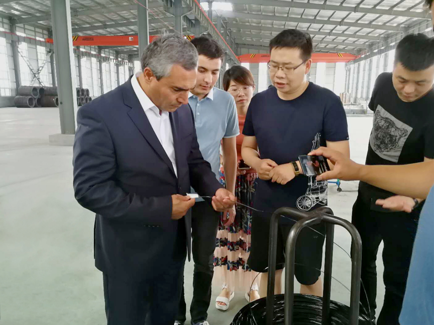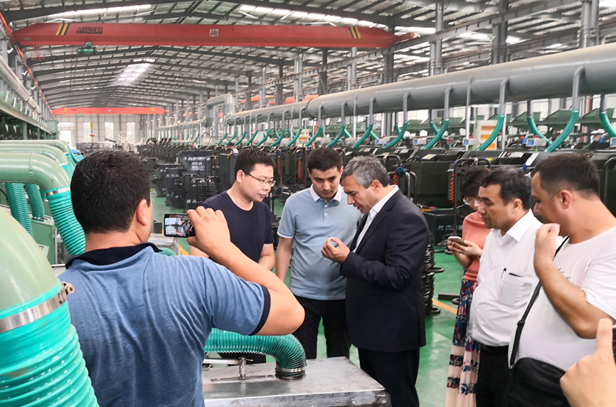 7月14日下午,烏茲別克斯坦KOKAND CITY州長 Usmonov Maruf蒞臨青龍劍釘業(yè)經濟開發(fā)區(qū)公司。青龍劍釘業(yè)總經理馬群澤熱情接待了到訪的Usmonov Maruf先生及隨行人員,并陪同Usmonov Maruf先生到車間進行參觀考察。