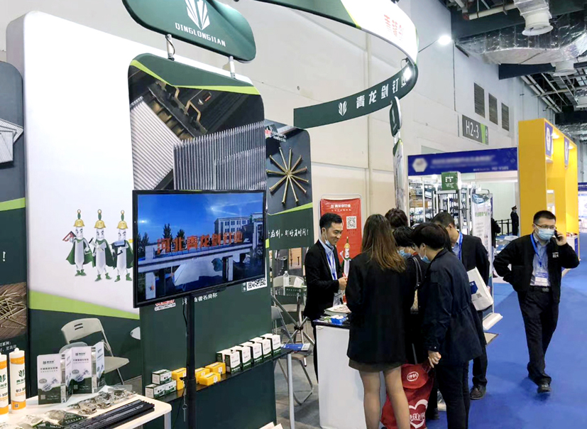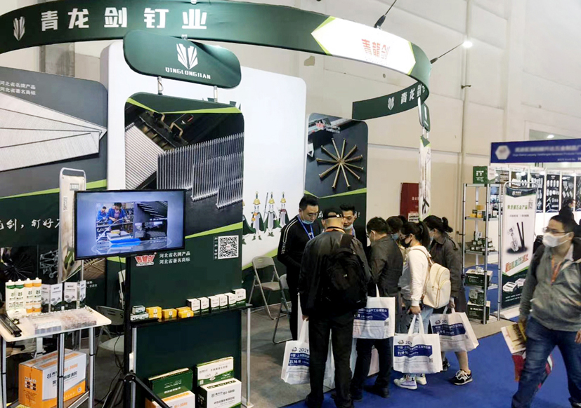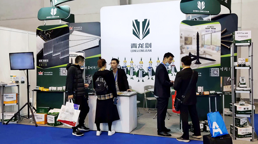 青龍劍公司此次的展品有:建筑用釘、裝修用釘、木工用釘、螺絲釘、門窗緊固、家具用釘以及膠類、五金類等新產品,展臺吸引了不少觀展商的目光。觀展商紛紛到公司展位前駐足咨詢,公司人員耐心為客戶詳細講解產品。