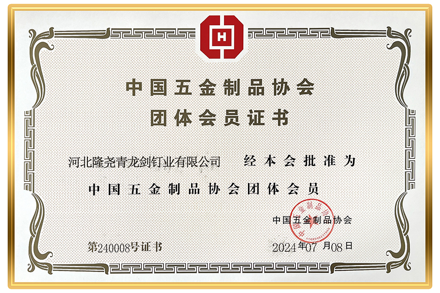 熱烈祝賀青龍劍公司成為中國五金制品協會團體會員,經過中國五金協會嚴苛審核,青龍劍公司于2024年7月8日榮獲中國五金制品協會頒發的團體會員證書。青龍劍公司作為行業領軍企業,以此為契機,以強烈的責任心,高度的使命感,引領行業穩步前行,努力創建國際先進智能制造全產業鏈工廠。-